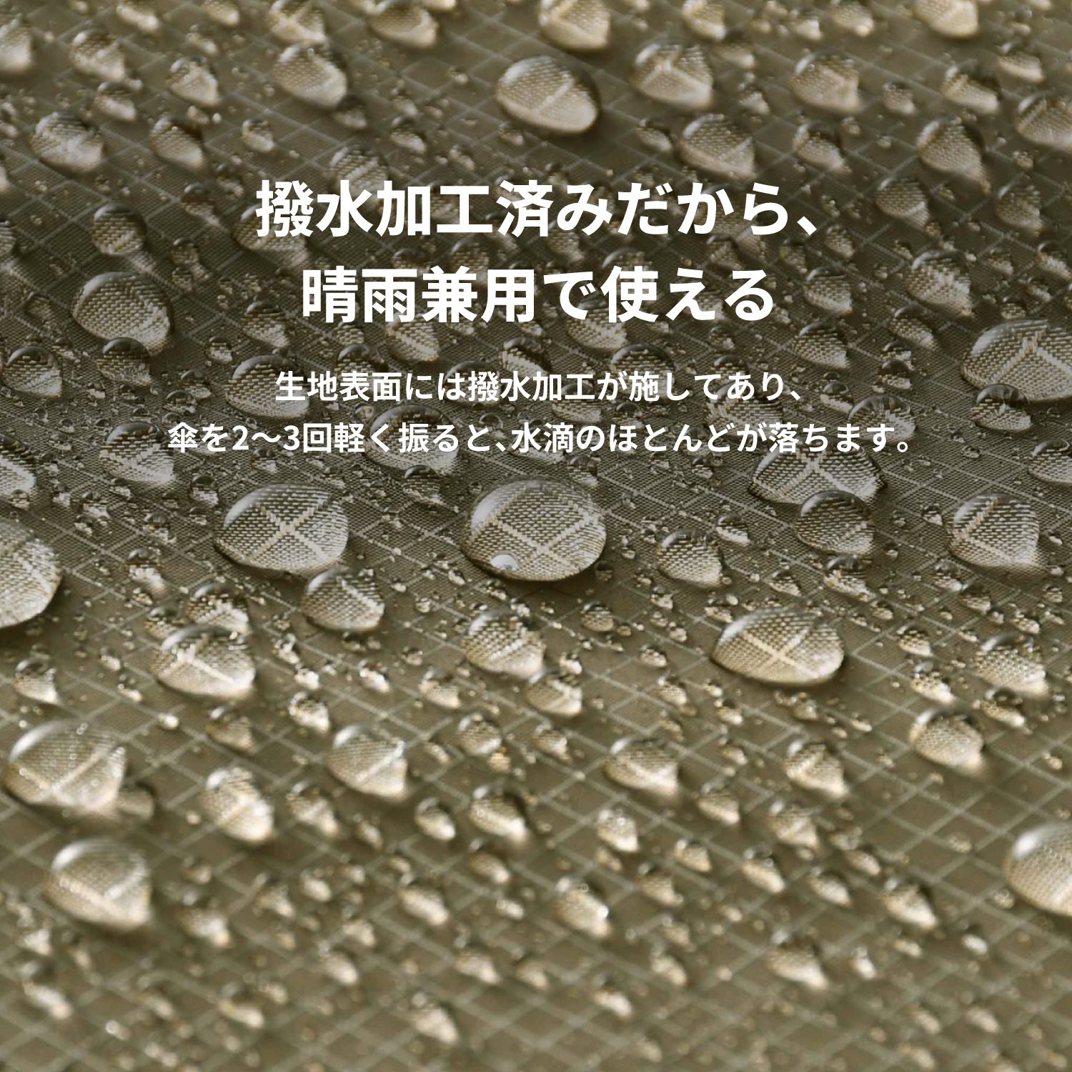 • 圧倒的な「100%遮光・遮熱」で真夏の熱線をブロック 紫外線・可視光線を100%遮断し、熱の原因となる近赤外線も遮る高性能生地を採用しました。強い日差しを物理的に遮断することで傘の下に涼しい空間を作り出し、日焼け対策のみならず、過酷な夏場の熱中症対策としても高い効果を発揮します。