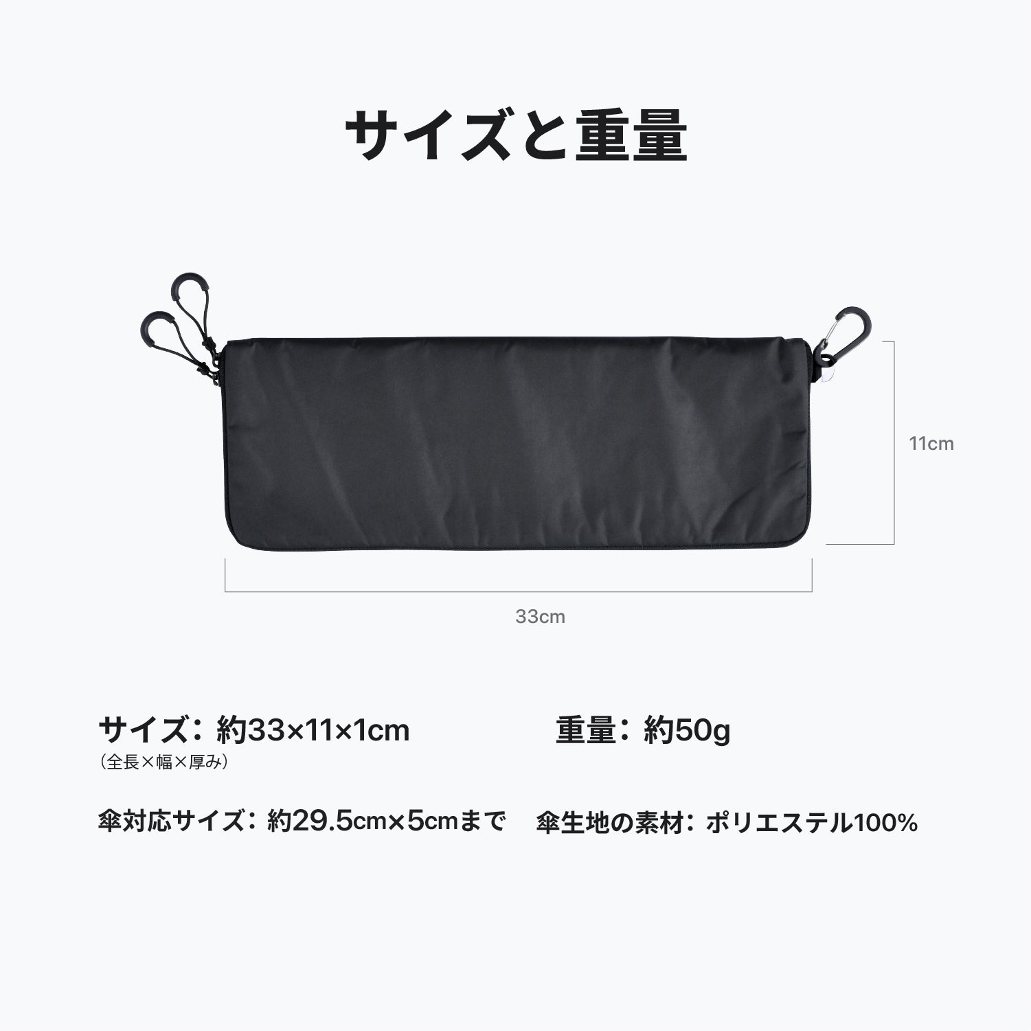 - 対応サイズ:最大で全長約30cm、傘幅約5cm程度の折りたたみ傘に対応しています。特殊な形状の傘や大きすぎる傘は収納できない場合があります。