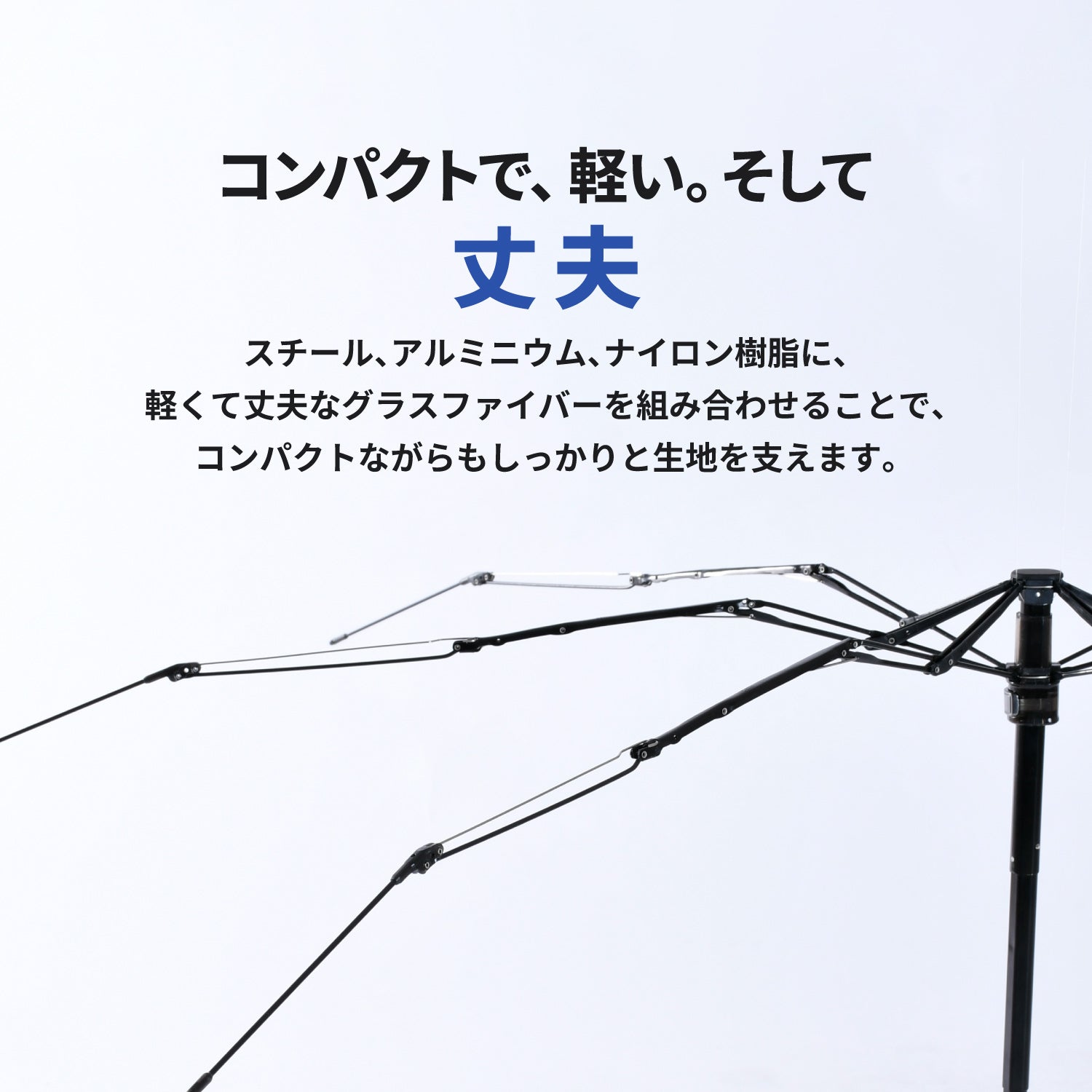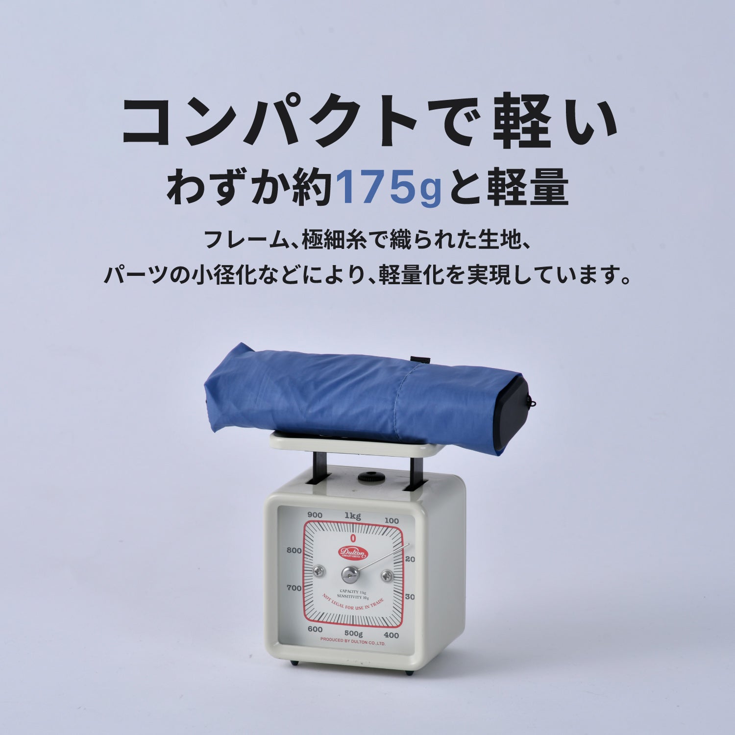To achieve this size, we completely redesigned the frame structure. We adopted a unique five-section frame and selected hexagonal aluminum for the shaft to increase strength. After repeated millimeter-level adjustments, we arrived at a flat form just 3cm thick that fits easily into the gaps of a pocket or small bag. Its light weight of approximately 175g is also an uncompromising specification for everyday carry.