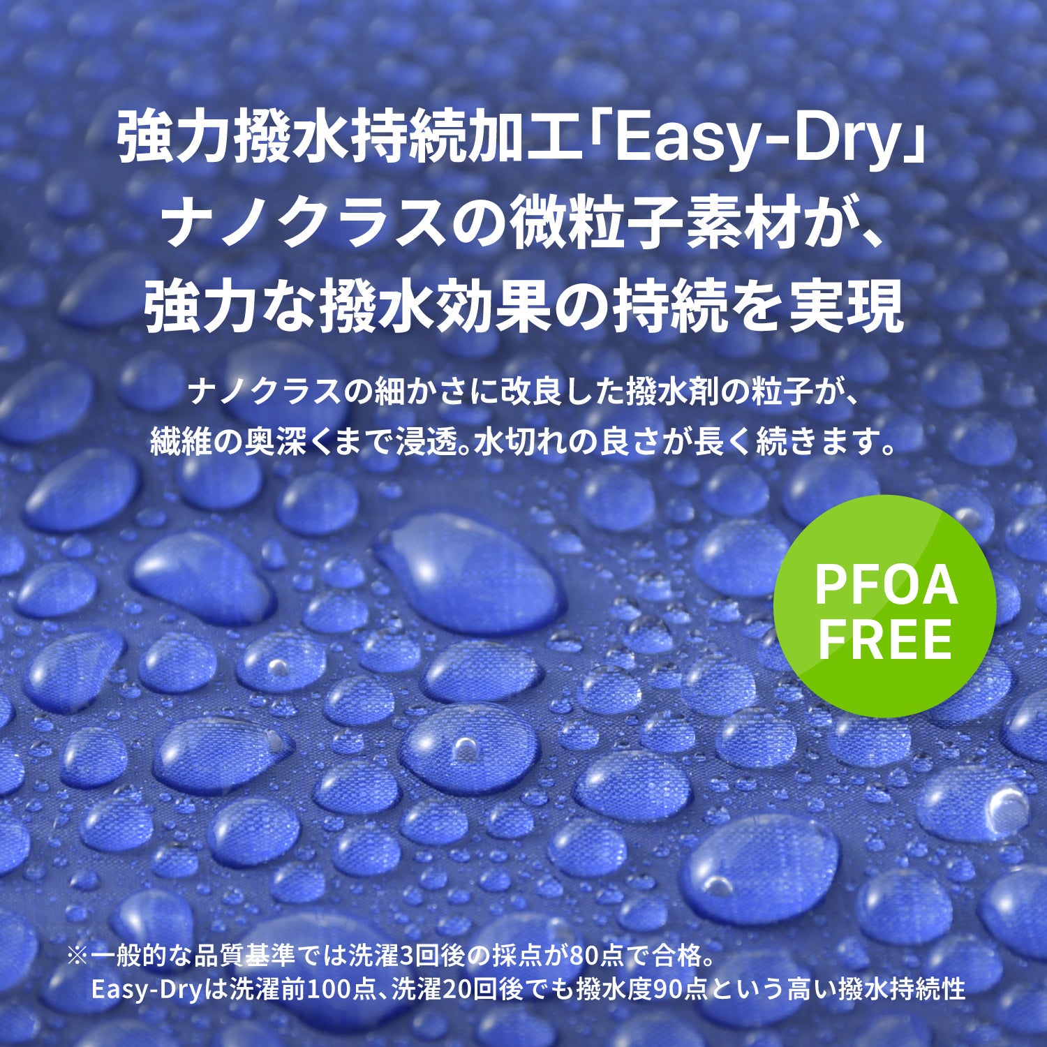 There's nothing more troublesome than dealing with a wet umbrella when traveling. That's why we've applied a powerful, long-lasting water-repellent finish called "Easy-Dry." A simple shake will remove most of the water, so you can quickly put it in your bag without worrying about getting the surrounding area wet. This technology, which maintains its water-repellent properties even after 20 washes, is my commitment to ensuring that you can use it for a long time.
