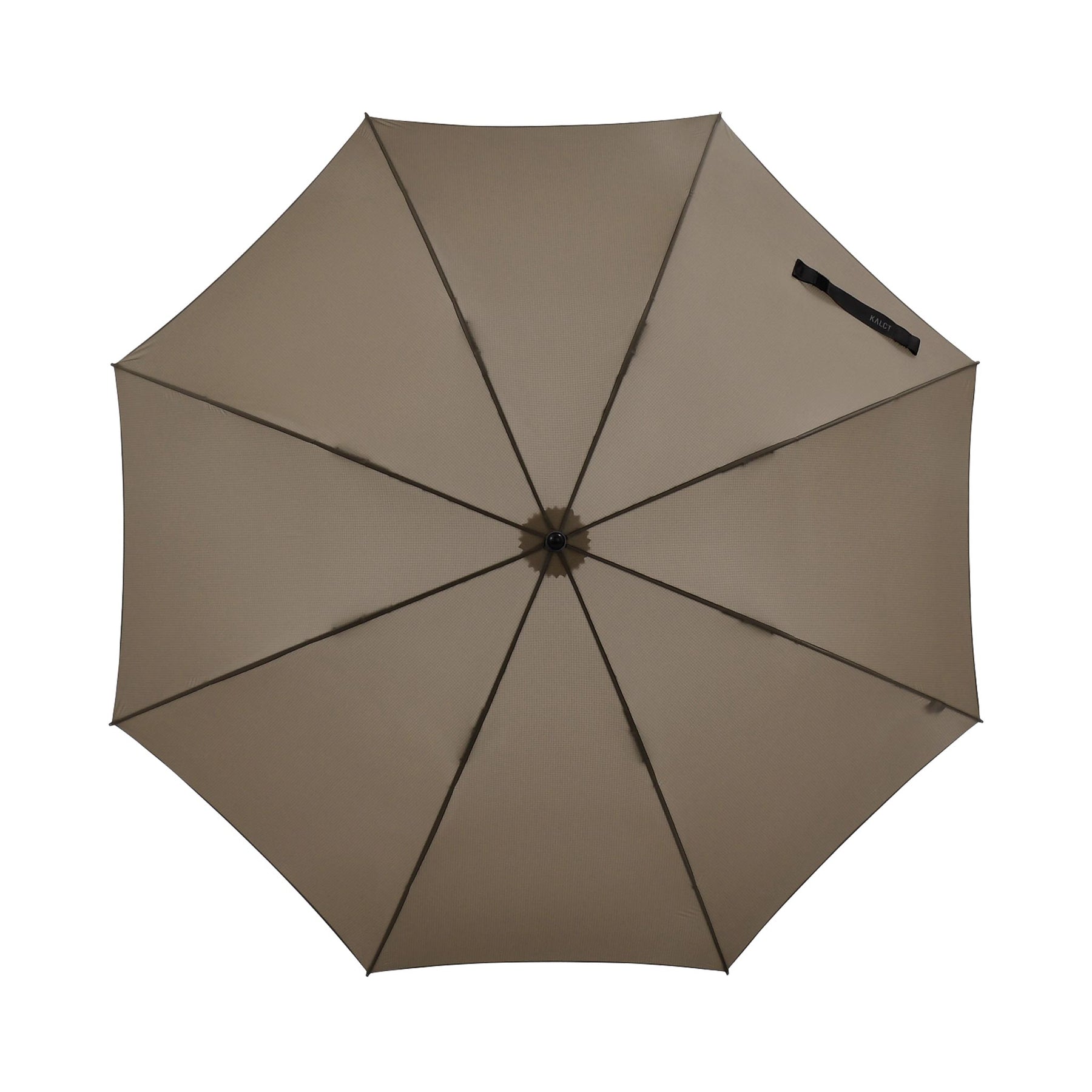 The completed KALCT weighs just 172g. This is about half the weight of a plastic umbrella sold at convenience stores and comparable in weight to a typical ultra-lightweight folding umbrella. We also addressed the drawback of long umbrellas: their bulkiness. While the average long umbrella is 84cm long, the KALCT is 67cm long. By designing it 17cm shorter, we dramatically improved its maneuverability on stairs and on trains. And yet, when opened, it has a diameter of approximately 102cm, providing ample surface area for reliable protection. We've managed to minimize size and weight while maintaining the convenience of a long umbrella.