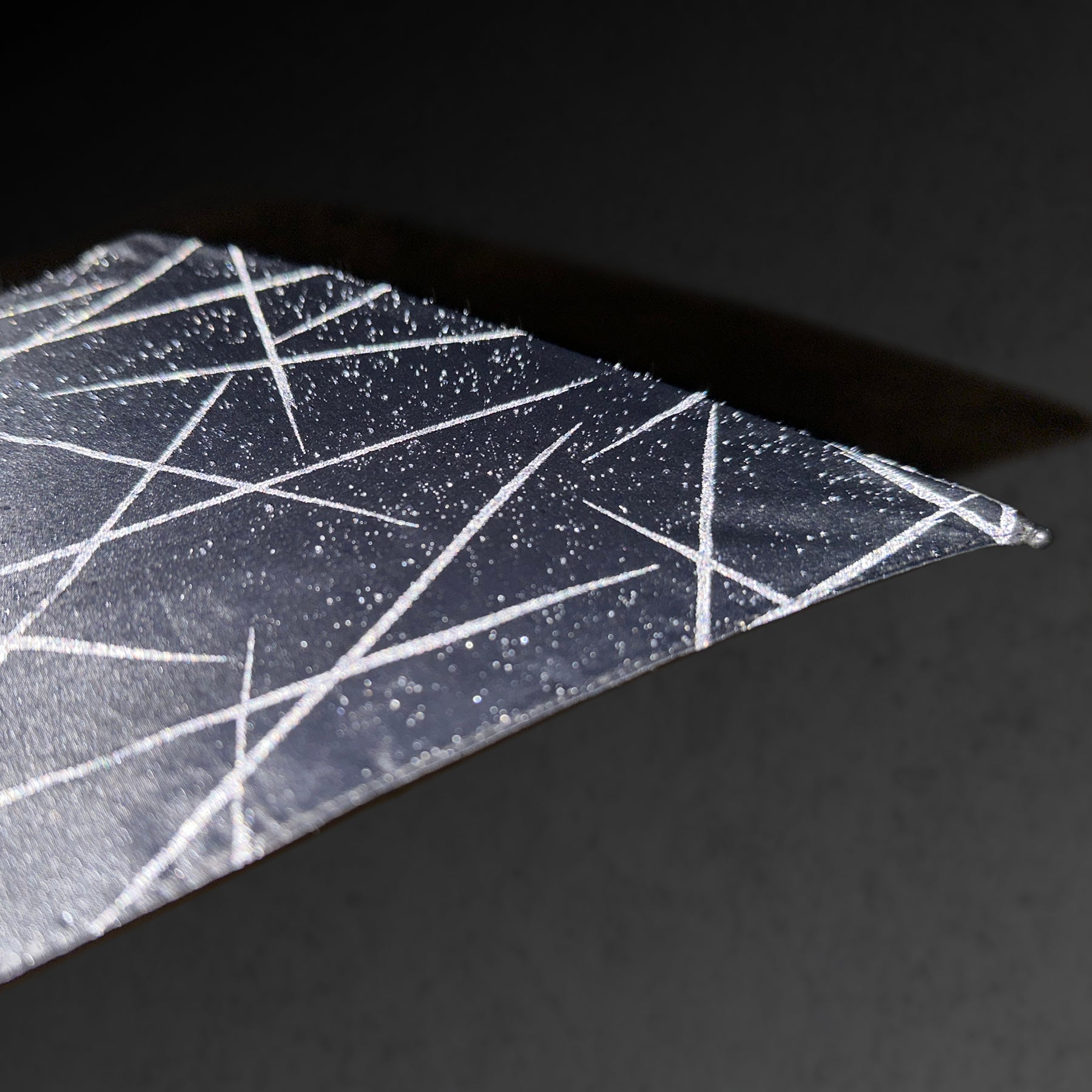 After much trial and error, we printed this 3M™ reflective material all over the fabric. When light hits it in the dark at night, the umbrella's silhouette becomes a "light that stands out." We adjusted the print density down to the millimeter, achieving a balance between functionality and beauty, blending in with the urban charcoal gray design during the day and increasing visibility at night.