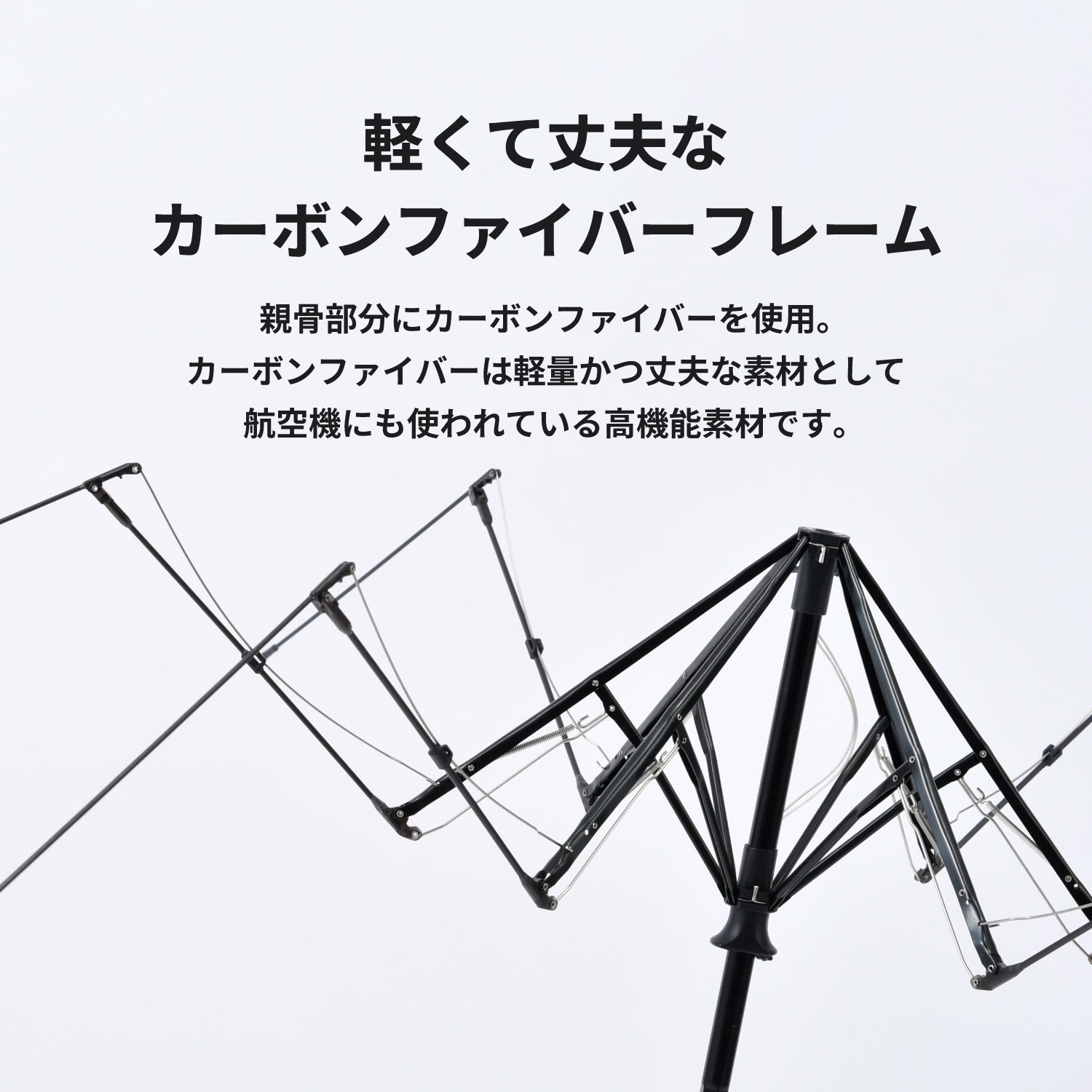 • スリムなのにタフ。風速15m/sに耐える「実力派」 風速15m/sの試験と500回の開閉テストをクリア。しなやかなカーボン素材が風を逃がし、急な雨風の日でも安心して長く使えます。